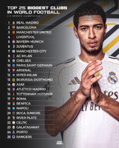 A pochi mesi dalla fine della stagione, è tempo di classifiche. La celebre rivista statunitense “Sport Illustrated” ha posizionato il Napoli nei primi 20 club al mondo. Il club di De Laurentiis è, secondo tale graduatoria. al 19esimo posto, quinta società italiana dopo Juventus (6°), Inter (8°), Milan (12°), Roma (17°). Al primo posto c’è Il Real Madrid, seguito dal Barcellona e dal Manchester United. Una posizione confermata, due giorni fa, dal sito footballdatabase. che ha messo in prima fila il Bayern. Il Napoli sarebbe, in questo caso, dinanzi alla Juve con un coefficiente di 1803 punti.