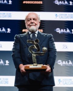 Il Napoli dello scudetto ha ritirato questa sera diversi premi nel corso della cerimonia del Gran Galà del Calcio 2025, tenutasi a Milano e organizzata dall’Associazione Italiana Calciatori (AIC). Sono stati premiati i protagonisti della stagione 2024/2025. Il Napoli ha vinto, innanzitutto, il riconoscimento per la ‘Miglior società della stagione’, con il premio che è stato ritirato dal presidente Aurelio De Laurentiis. Inoltre Antonio Conte si è aggiudicato il titolo di Miglior allenatore dell’anno.