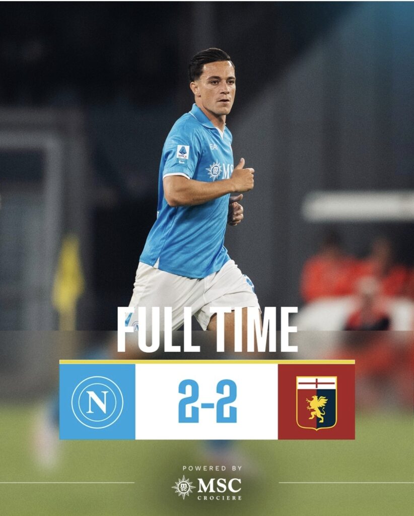 Il Napoli frena all’improvviso al Maradona: Vasquez nel finale firma il 2-2 che gela il Maradona, convinto di aver superato anche l’ostacolo Genoa con la prodezza di Raspadori. Il gol dell’attaccante sembra scacciare i cattivi pensieri, ma l’epilogo è amarissimo per il Napoli, autore di una prestazione forse condizionata dalla pressione. Ora l’Inter è -1 e la corsa scudetto è di nuovo apertissima. Gli azzurri dovranno essere bravi a ripartire perché col Parma è vietato sbagliare. Servirà una vittoria per rilanciare la corsa. Non bastano né il 13esimo gol di Lukaku, né la prova sontuosa di McTominay che serve due assist.