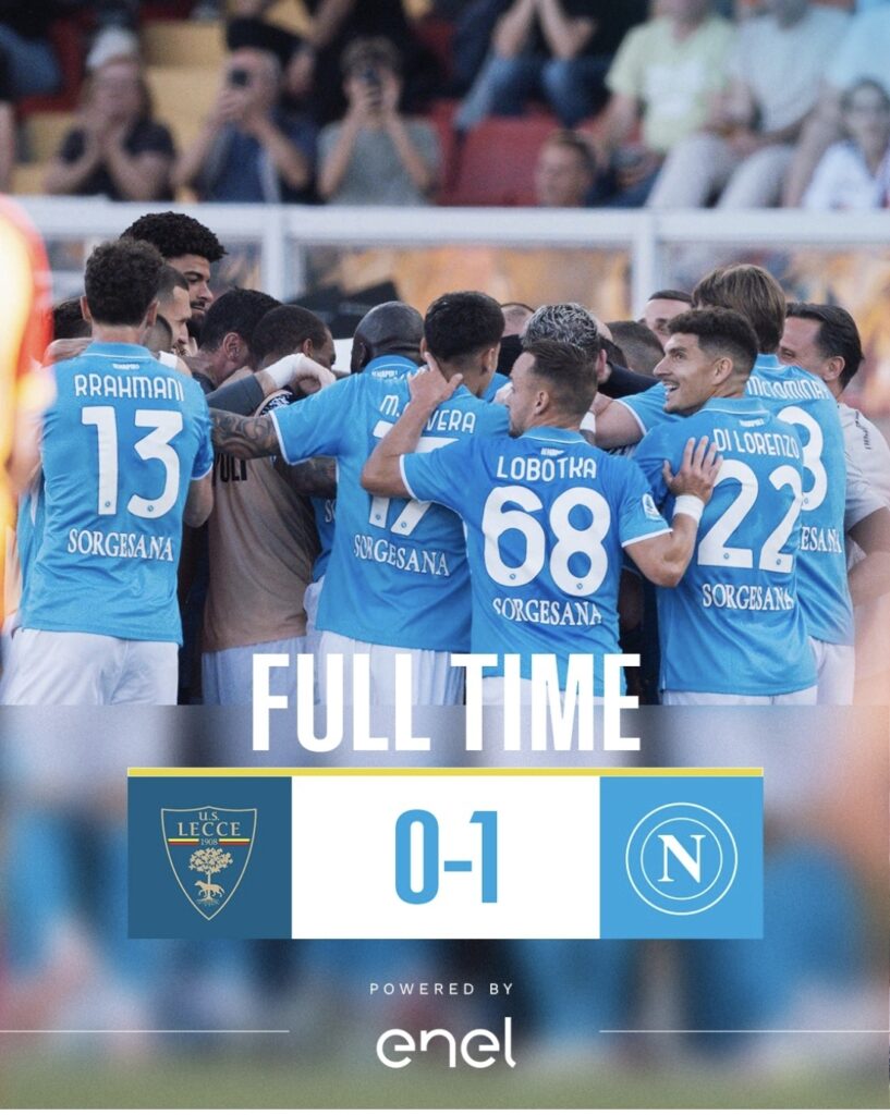 Il Napoli non brilla, ma continua la sua corsa inesorabile verso lo scudetto. Gli azzurri sbancano Lecce e conquistano un successo fondamentale al Via Del Mare. E’ decisiva la punizione di Giacomo Raspadori al 24′ del primo tempo, unico lampo di una prestazione poco brillante degli azzurri che nel secondo tempo provano a gestire un po’ troppo il risultato e faticano contro un Lecce generoso, ma poco pericoloso. Il Napoli non sbanda e porta a casa un successo fondamentale. Adesso mancano ancora tre passi verso la conquista del quarto tricolore. Da verificare le condizioni di Lobotka, uscito ad inizio ripresa.