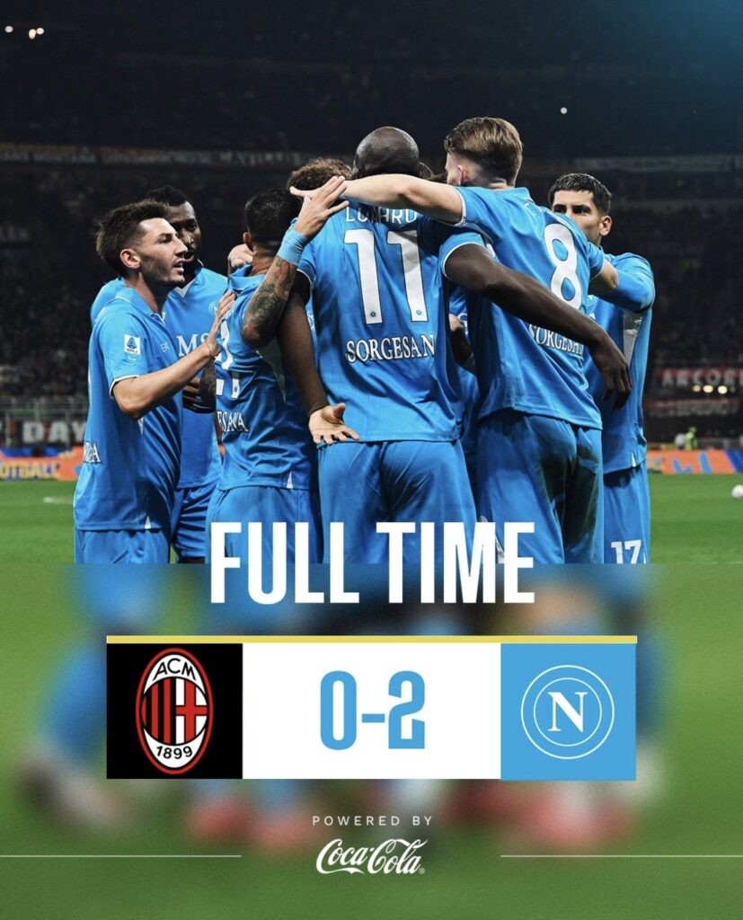 Una vittoria da grande squadra. Il Napoli è implacabile e vince a San Siro contro il Milan con grande autorevolezza. Tocca ai campioni fare la differenza. L’equilibrio lo rompe subito Lukaku: brucia Pavlovic nello scatto e segna l’1-0 dopo appena cinque minuti sull’assist di Anguissa. Il Milan alza l’intensità per venti minuti. Musah e Chukwueze impegnano Meret. Il Napoli tiene botta e raddoppia poco prima dell’intervallo con una magia di Kvaratskhelia: si accentra dalla sinistra e firma il 2-0. Nella ripresa Conte cambia assetto difensivo: il Napoli si mette 5-4-1 e limita le iniziative dei rossoneri. Fonseca inserisce Leao e Pulisic (influenzato) che hanno due buone occasioni, ma in entrambe le circostanze Meret è attento. Il Napoli vince e si dimostra implacabile.