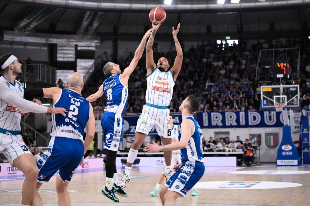 Partono bene gli azzurri con i canestri di Tote ed El-Amin mentre Brescia si affida ad Ivanovic. La Guerri riesce ad allungare sul +6 con 2 triple consecutive ancora di El-Amin, Burnell e Ndour tengono a contatto la Germani sul 15-17. L’attacco di Napoli si ferma però nel finale di parziale e la Germani riesce a rientrare con Bilan e Burnell, 41-44 dopo due tempi.