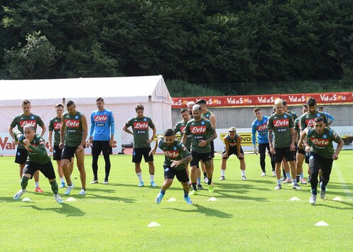Ultimo allenamento per il Napoli a Dimaro-Folgarida. Il gruppo azzurro partirà poi per la Scozia, dove domani ad Edimburgo è previsto il match amichevole contro il Liverpool.