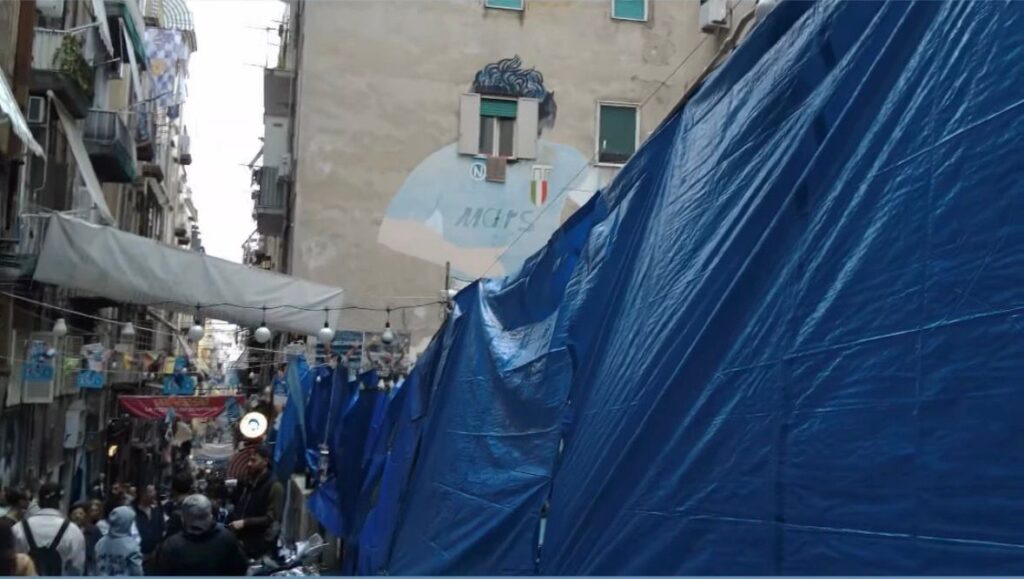 Blitz della polizia municipale di Napoli al Largo “De Deo”, nel cuore deiu ‘Quartiri Spagnoli’, ribattezzato “Largo Maradona”, dove si trova il celebre ‘murales’ meta del pellegrinaggio di milioni di turisti. Sequestrato tutto il materiale presente dalle Unità Operative Avvocata e Chiaia: si tratta di magliette, gadget e cinque carretti per la vendita di bevande. Coperta anche la cappella dove si trovano i vari cimeli e le statue dedicate all’ex campione del Napoli e interdetto l’accesso all’area. A rimanere scoperti solo il murale e una statua alta 6 metri sempre raffigurante Maradona, Per queste violazioni sono state comminate sanzioni amministrative pari a 5mila euro, oltre all’accertamento di altre irregolarità (occupazione abusiva di suolo pubblico e mancanza di passo carrabile). Gli uffici tecnici competenti procederanno, dopo approfondimenti, alla verifica della destinazione urbanistica di un’area di circa 200 metri quadrati.
