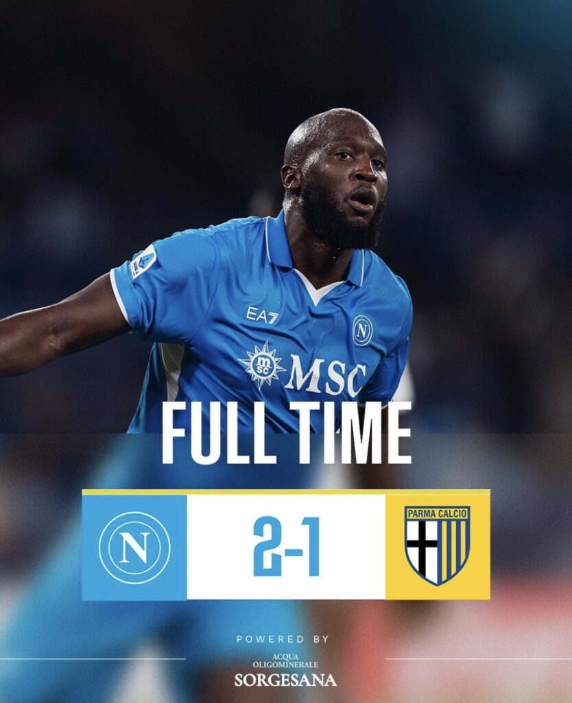 All’ultimo respiro. Il Napoli vince 2-1 in rimonta e fa esplodere il Maradona contro il Parma. Decisivo l’ingresso di Lukaku. Big Rom trasforma gli azzurri e trascina i suoi alla vittoria. Segna il pareggio di potenza in area di rigore, poi tocca a Neres servire l’assist per il colpo di testa di Anguissa. Decisivo Meret su Almqvist all’ultimo secondo. Il Napoli vince ma ovviamente dovrà ancora migliorare soprattutto per quanto riguarda l’equilibrio. I padroni di casa soffrono nel primo tempo, poi ci pensano i nuovi. Il Parma finisce in 10 per l’espulsione del portiere Suzuki.