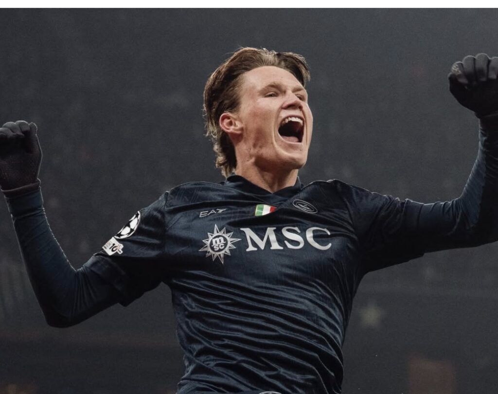 Conte sceglie di nuovo Vergara e sulle fasce opta per Spinazzola e Gutierrez, arrentrando Di Lorenzo ed escludendo Beukema dalla formazione iniziale. Il Copenaghen resta in dieci per l’espulsione di Delaney e il Napoli va in vantaggio con il colpo di testa di McTominay. Il guizzo dello scozzese legittima il dominio del Napoli.