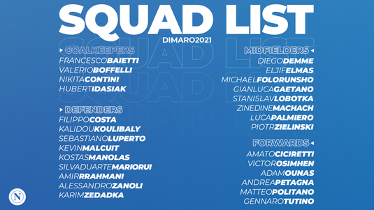 Centrocampisti: Demme Diego (1991), Elmas Eljif (1999), Folorunsho Michael (1998), Gaetano Gianluca (2000), Lobotka Stanislav (1994), Machach Zinedine (1996), Palmiero Luca (1996), Zielinski Piotr (1994).