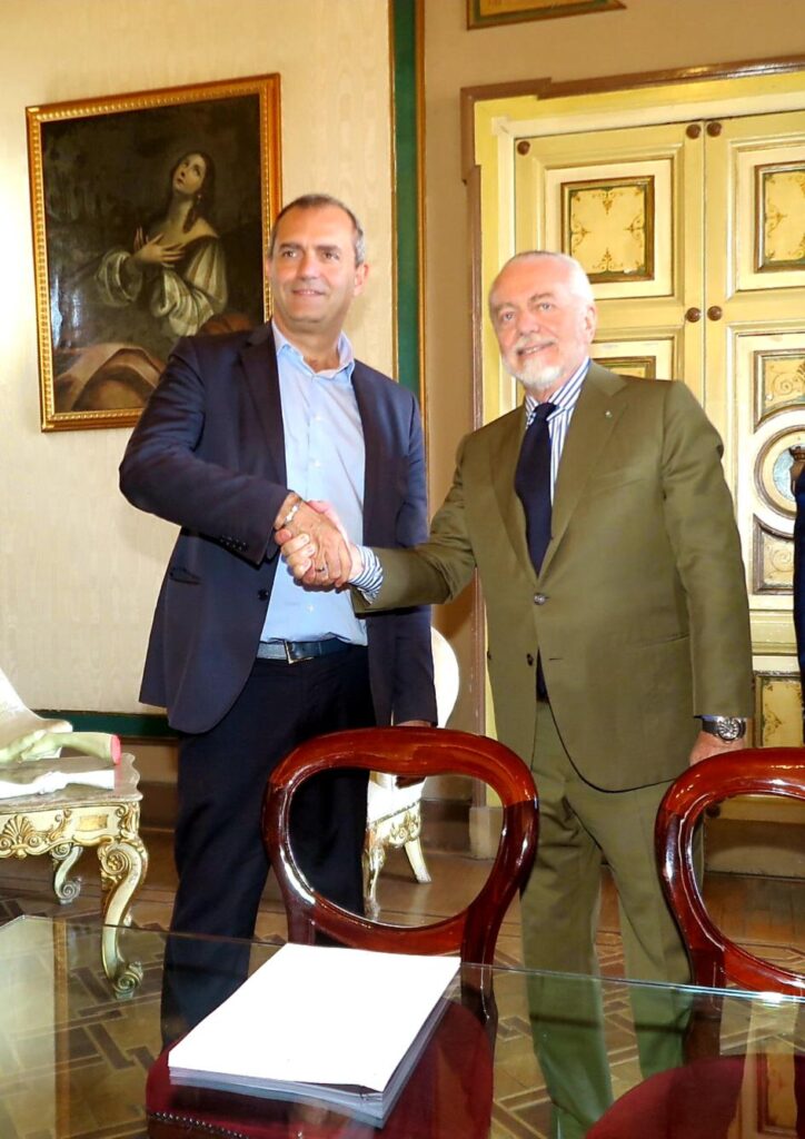 Il Comune di Napoli e la Società Sportiva Calcio Napoli hanno sottoscritto oggi la convenzione della durata di cinque anni, rinnovabili per ulteriori cinque, per la concessione d’uso dello Stadio San Paolo, alla presenza del Sindaco di Napoli Luigi De Magistris. Dinanzi al Segretario Generale del Comune Patrizia Magnoni e del Direttore generale Attilio Auricchio hanno firmato la convenzione il Presidente della SSC Napoli Aurelio De Laurentiis e la dirigente del Servizio comunale Grandi Impianti Sportivi, Gerarda Vaccaro, assistiti dagli avvocati dell’Amministrazione comunale e della Società Antonio Andreottola, Arturo Testa e Valentina Comello. Erano altresì presenti per il Comune di Napoli l’Assessore allo sport Ciro Borriello e il Presidente della Commissione consiliare Carmine Sgambati. Per la Società Sportiva Edoardo De Laurentiis, Vice Presidente, Andrea Chiavelli, Amministratore delegato, ed Alessandro Formisano, Head of operation, Sales & Marketing. Grande soddisfazione per l’intesa raggiunta è stata espressa dai vertici del Comune e del Napoli che hanno sottolineato l’importante e proficuo lavoro svolto soprattutto negli ultimi anni per giungere alla sigla della convenzione di oggi.