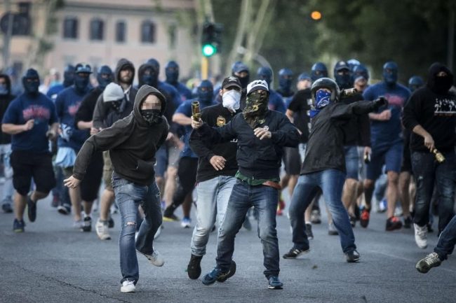 Primi scontri nel tratto di andata dei tifosi del Napoli verso Torino. Come ha riportato l’Ansa, infatti, ottanta tifosi laziali sono stati intercettati all’alba dalla polizia al casello di Monte Porzio Catone, dopo gli scontri avvenuti sull’A1 con ultras del Napoli, con gli ultrà laziali che avrebbero aspettato i tifosi della fazione opposta per un tentativo di agguato. Una volta bloccati i laziali sono stati compiutamente identificati anche con il supporto della polizia scientifica. Dall’interno di uno dei van diretti verso la barriera autostradale, alla vista degli agenti, hanno lanciato lungo il ciglio della strada oggetti atti ad offendere e coltelli da cucina. Sequestrato tutto il materiale.
