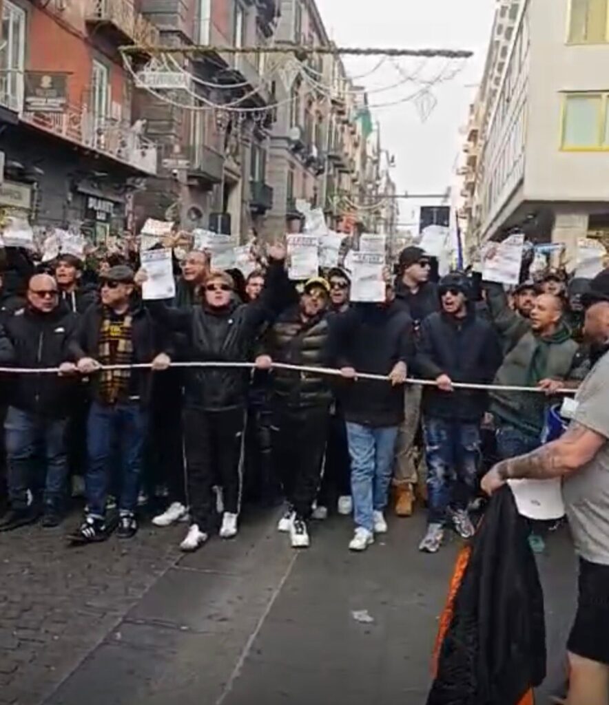 Si è tenuta questa mattina al centro di Napoli la manifestazione degli Ultras di Curva A e Curva B dello stadio ‘Maradona’ per protestare contro il reiterato divieto di trasferta per i residenti in Campania stabilito dagli organi competenti per le partite del Calcio Napoli. Nel 2025 ai tifosi campani sono state ‘concesse’ solo due trasferte, con una chiara disparità di trattamento rispetto alle altre tifoserie d’Italia. La manifestazione, alla quale hanno partecipato centinaia di tifosi, è partita da Largo Berlinguer per poi dipanarsi su Via Toledo sino a Piazza Municipio. Gli ultras, provocatoriamente, ‘minacciano’ il cambio di residenza pur di seguire il Napoli nelle partite fuori casa e, in questo senso, hanno mostrato il modulo per cambiare la residenza.